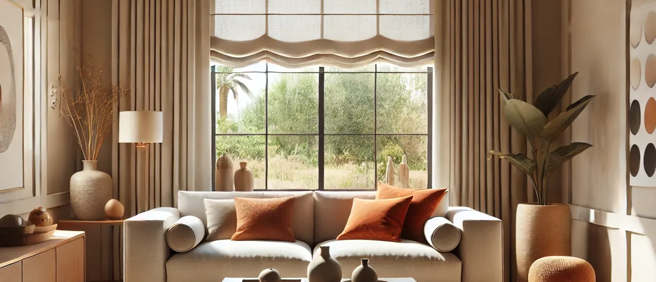 Imagina un salón con grandes ventanales, mobiliario de madera natural y detalles artesanales. Las cortinas en lino o algodón, en tonos tierra o naturales, suavizan la entrada de luz y envuelven el espacio. El resultado es un ambiente cálido, equilibrado y lleno de personalidad, donde cada elemento cuenta una historia.