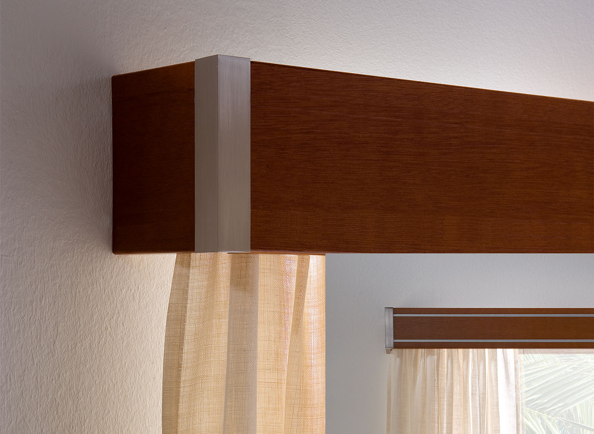 Las galerías de madera y acero aportan calidez y elegancia a cualquier ambiente. Disponibles en acabados como cerezo o wengué, son ideales para decoraciones rústicas, clásicas o atemporales. Su estructura combina la nobleza de la madera con detalles metálicos en acero, logrando un equilibrio entre tradición y modernidad. Con 12 cm de altura, ofrecen una cobertura estética y armoniosa para ocultar rieles y mecanismos.